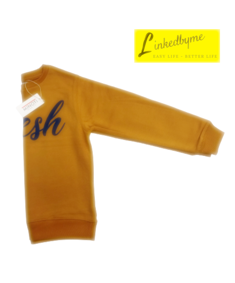 * Luôn trông thật sành điệu trong mọi loại thời tiết với Áo khoác nỉ MINOTI cổ điển dành cho trẻ em với Màu in tươi sáng phía trước & màu mù tạt không bao giờ lỗi mốt.